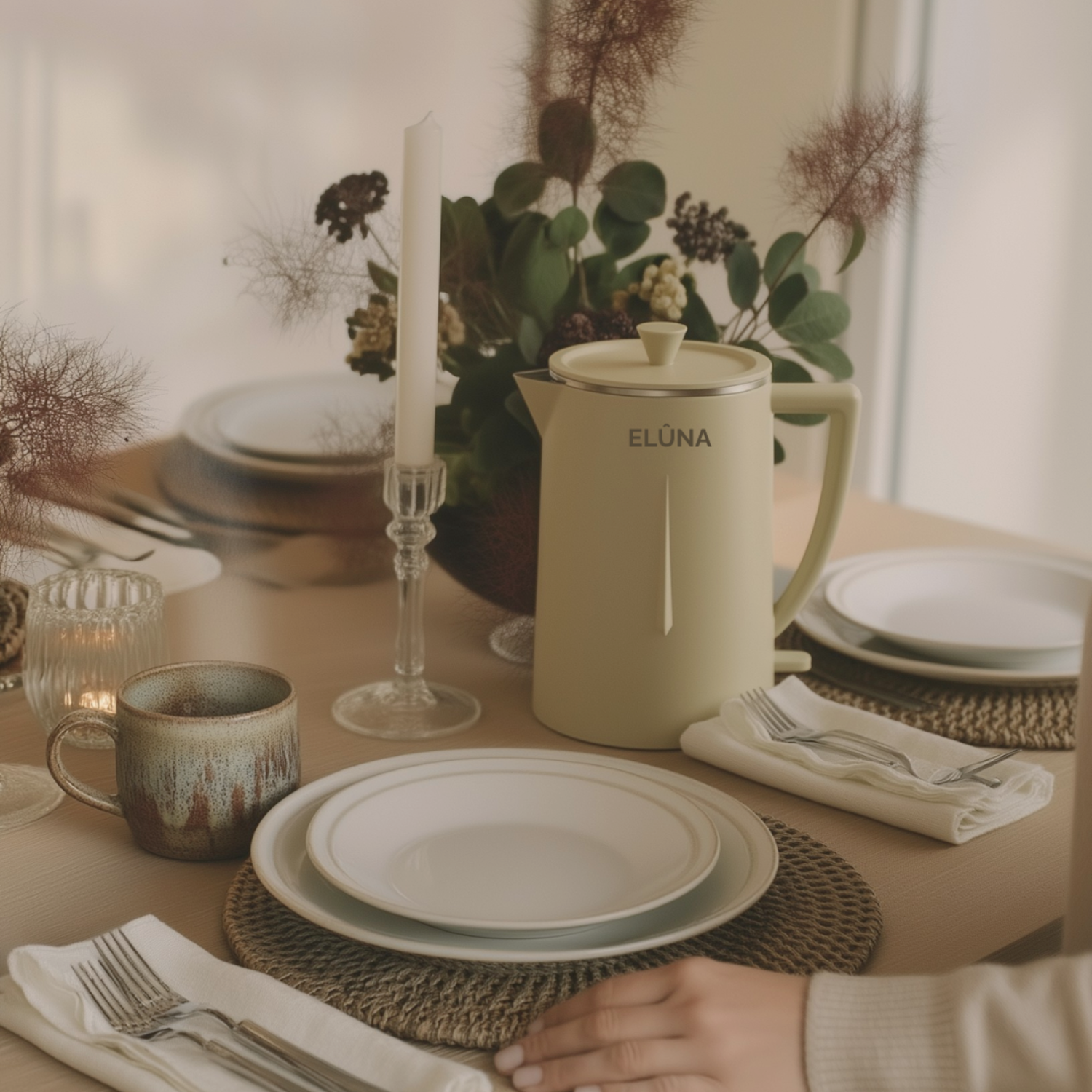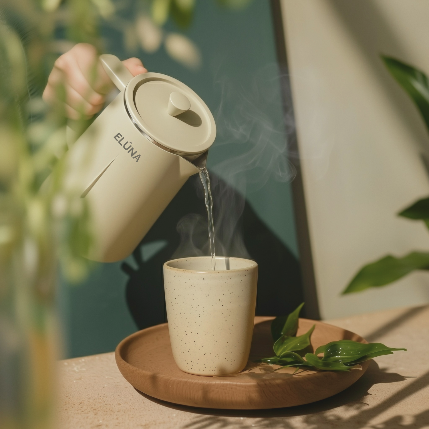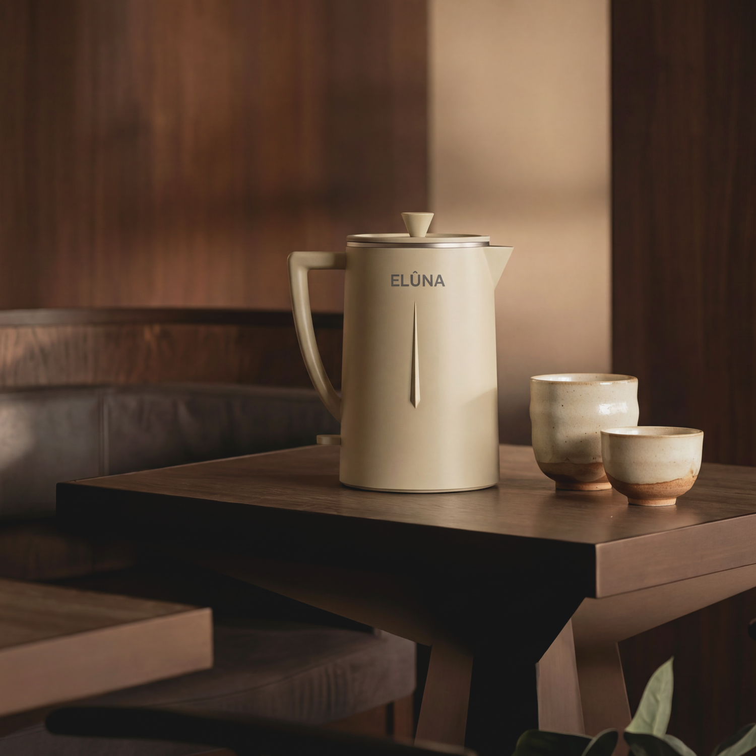 ELÛNA is ontworpen voor mensen die bewust pauzeren. Met een stille kookfunctie, zachte vormen en een vloeiende schenking past hij perfect bij jouw moment voor jezelf.